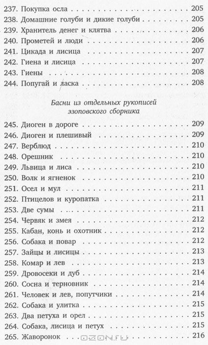 От издателяЛегендарный баснописец Эзоп, по свидетельству Геродота, жил в VI веке до нашей эры на острове Самос в Греции и по рождению был рабом. Предание наделило его талантом сочинителя, смекалкой и остроумием. Но никаких достоверных свидетельств, что басни, дошедшие до наших дней под именем Эзопа, действительно придуманы им, нет. За свой язык и убеждения Эзоп поплатился жизнью, но остался в веках великим поэтом, а также героем народных книг и литературных произведений. Знаменитый бразильский драматург Гильерме Фигейредо в середине XX века написал о нем пьесу "Лиса и виноград", по сюжету которой на российском телевидении были сняты популярные постановки. Возможно, Эзоп и вправду был всего лишь вымышленным героем, но сколько бесценных истин явил он в своих сочинениях, послуживших кладезем мудрости для многих поколений читателей. Басни Эзопа стали также источником вдохновения для литераторов позднейших времен, среди которых такие великие имена, как Жан де Лафонтен и Иван Андреевич Крылов.