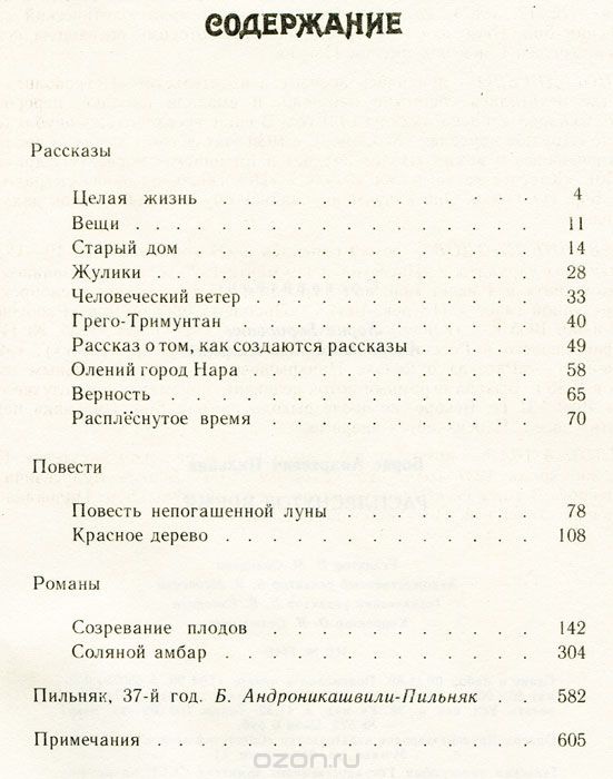 В книгу вошли рассказы и две повести: "Целая жизнь", "Вещи", "Старый дом", "Жулики", "Верность", "Повесть непогашенной луны", "Красное дерево", романы: "Созревание плодов", "Соляной амбар". |